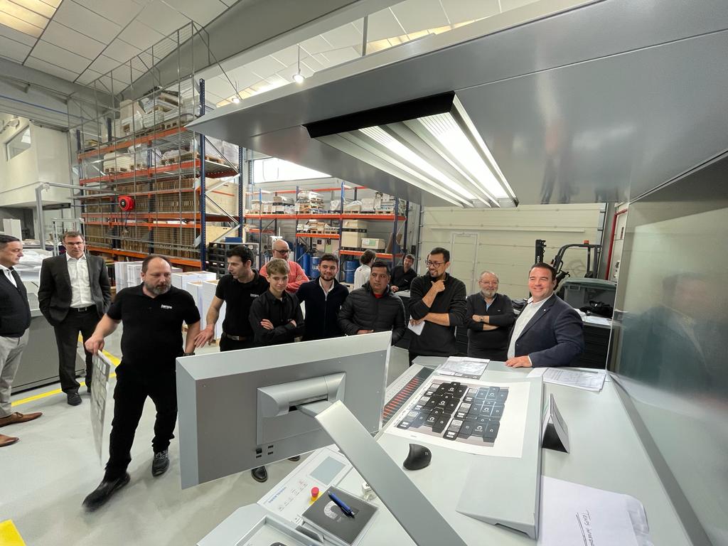 En las últimas semanas, Temps Impresores ha vuelto a ser noticia por hacer gala de su hospitalidad y por el hecho de haber recibido un premio que reconoce a la empresa como modelo Heidelberg de referencia mundial 2022, gracias al impecable diseño de flujo de trabajo y su minucioso plan de inversiones de los últimos 4 años. Como representantes de Heidelberg Spain, asistieron Gunnar Vogt, CEO de HSP, y Pedro García, responsable de zona. Por parte de Heidelberg Druckmachinen, entregó la placa José Diaz, responsable de Dealer Markets.